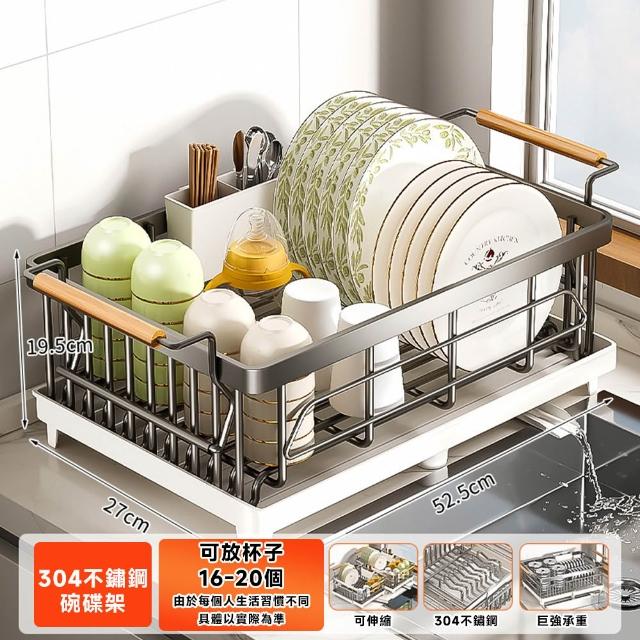 伸縮瀝水碗架 瀝水架 304不鏽鋼🔥加寬間距大小碗放得下 瀝水籃 碗盤碗筷收納架 碗碟收納 碗架 瀝水碗架 伸縮碗櫃