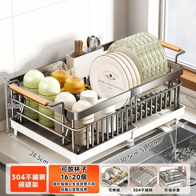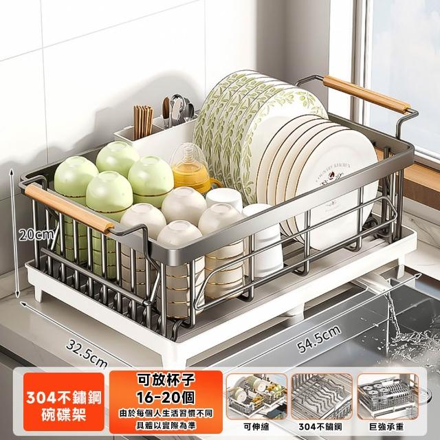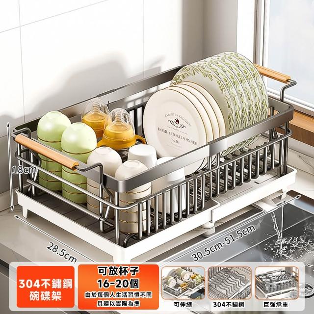 伸縮瀝水碗架 瀝水架 304不鏽鋼🔥加寬間距大小碗放得下 瀝水籃 碗盤碗筷收納架 碗碟收納 碗架 瀝水碗架 伸縮碗櫃