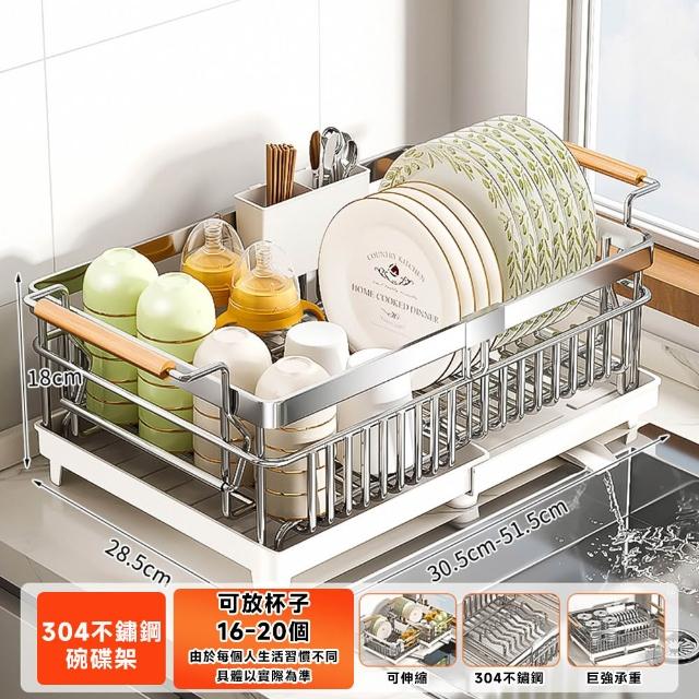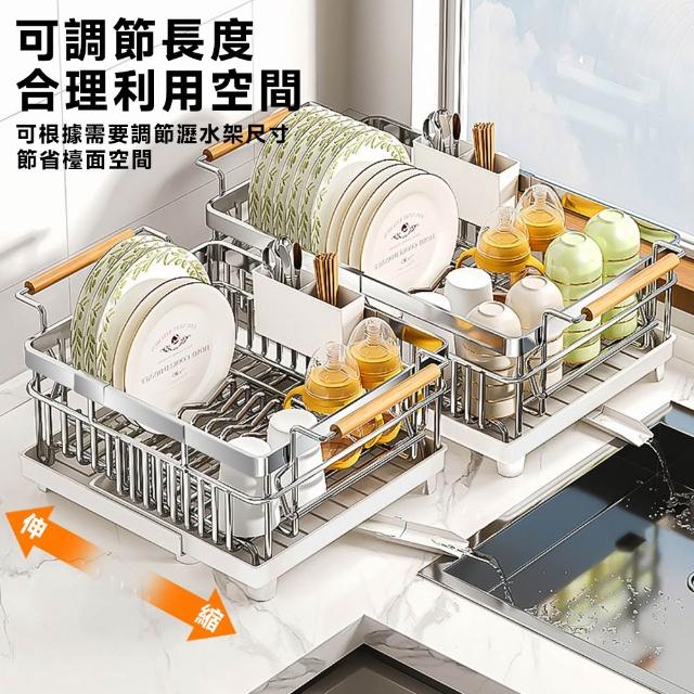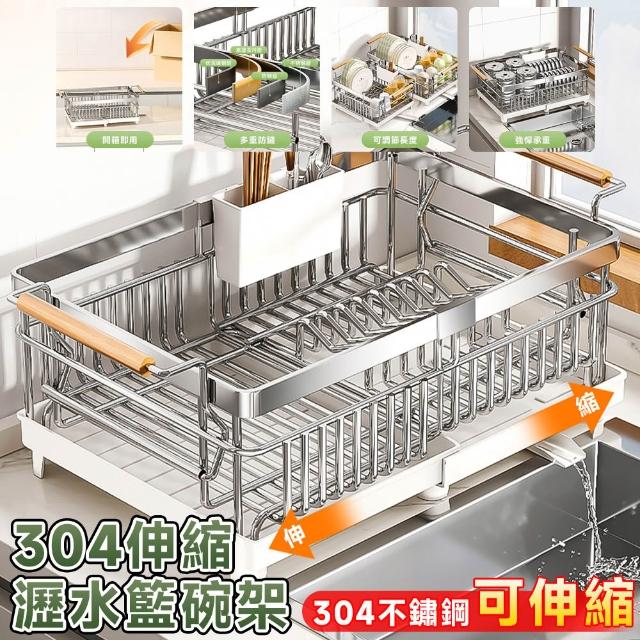 伸縮瀝水碗架 瀝水架 304不鏽鋼🔥加寬間距大小碗放得下 瀝水籃 碗盤碗筷收納架 碗碟收納 碗架 瀝水碗架 伸縮碗櫃