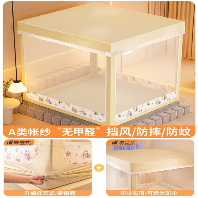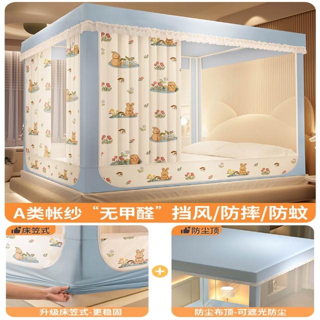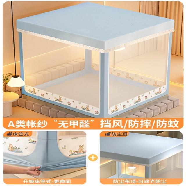 STAR·U星優品牌店 蚊帳 家用蚊帳 防摔蚊帳 回底床笠款蚊帳 蒙古包蚊帳 一體式床簾防塵頂 防蚊蚊帳(A類抗菌帳紗-升級床笠更穩固)