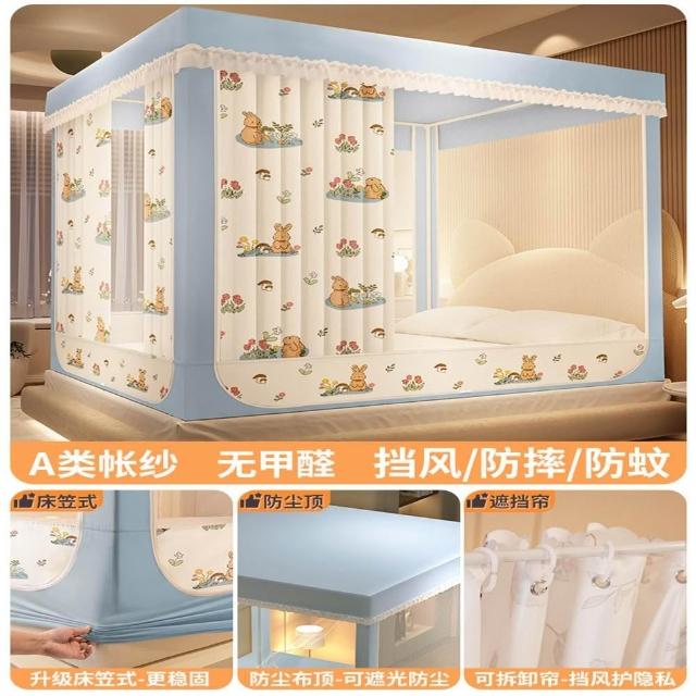 STAR·U星優品牌店 遮光蚊帳 防蚊蚊帳 蚊帳 (一體式床簾-自帶床笠) 蒙古包 臥室蚊帳 床幔 回底蚊帳