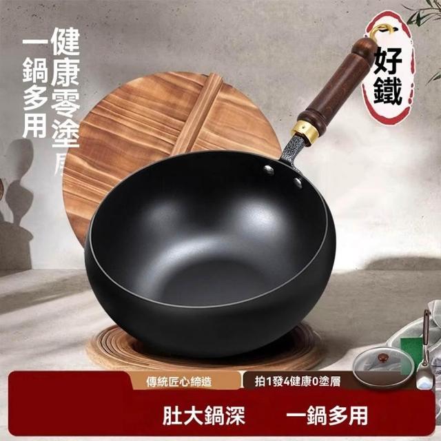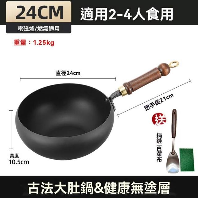 STAR·U星優品牌店 大肚鍋 鐵鍋 章丘大肚鍋 不粘炒鍋 炒菜鍋 手工炒鍋 (免開鍋/送鍋鏟+百潔布/健康無塗層)