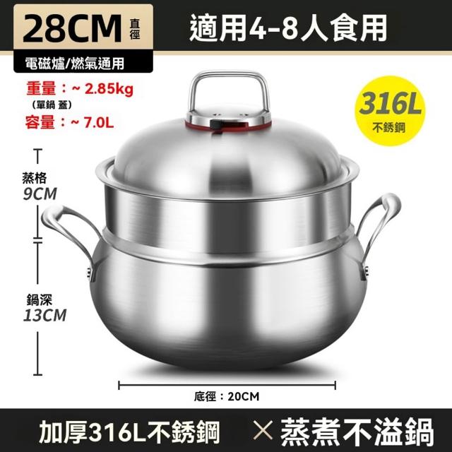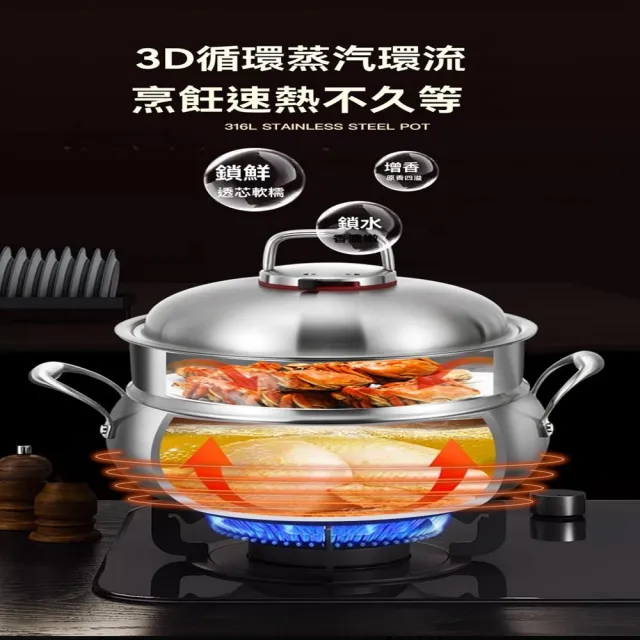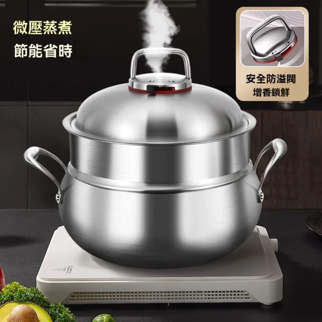 STAR·U星優品牌店 316不鏽鋼微壓鍋 大肚鍋 蒸鍋 蘋果鍋 燉煮微壓湯鍋 微壓鍋 燉鍋 湯鍋 湯蒸鍋 不粘鍋(電磁爐/IH爐通用/蒸煮不溢鍋)