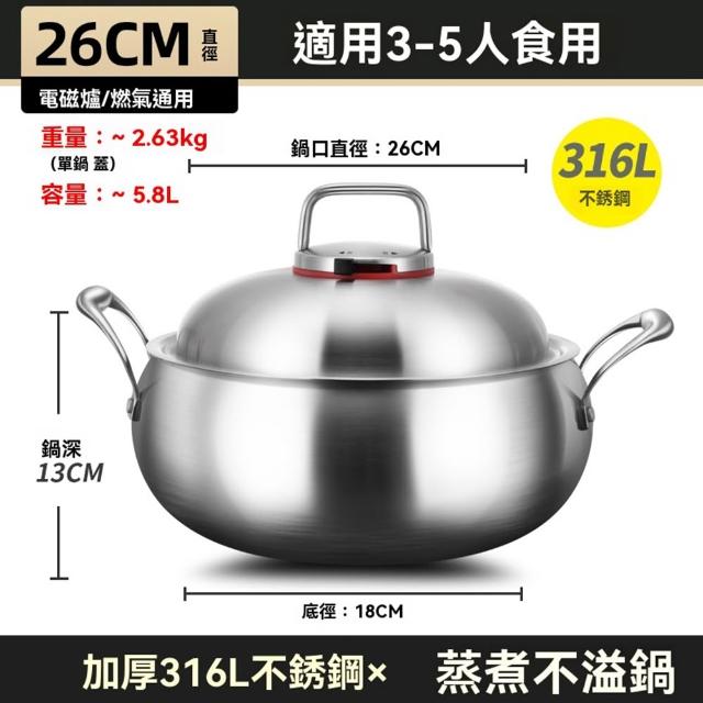 STAR·U星優品牌店 316不鏽鋼微壓鍋 大肚鍋 蒸鍋 蘋果鍋 燉煮微壓湯鍋 微壓鍋 燉鍋 湯鍋 湯蒸鍋 不粘鍋(電磁爐/IH爐通用/蒸煮不溢鍋)