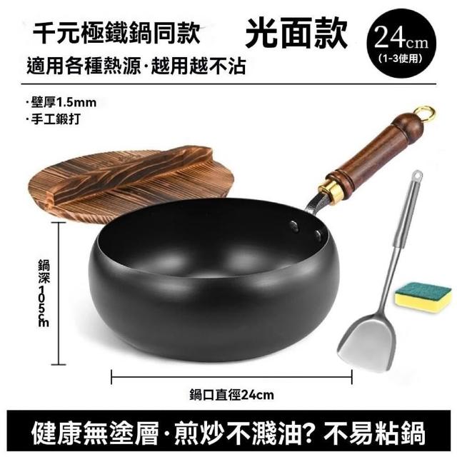 STAR·U星優品牌店 章丘鐵鍋 大肚鍋 小炒鍋 不粘鍋 無塗層加厚加深 炒菜鍋 輔食鍋(光面款越用越不粘/鍛打鐵鍋)