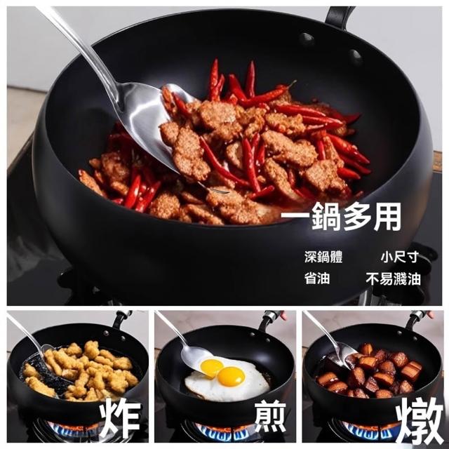 STAR·U星優品牌店 鐵鍋 純手工鍛打炒鍋 不粘無塗層 章丘大肚鍋 炒菜鍋 小奶鍋 古法鍛造 免開鍋(爐竈通用/送鍋鏟/原木手柄/一鍋多用)