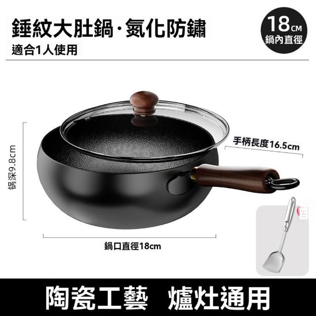 STAR·U星優品牌店 鐵鍋 純手工鍛打炒鍋 不粘無塗層 章丘大肚鍋 炒菜鍋 小奶鍋 古法鍛造 免開鍋(爐竈通用/送鍋鏟/原木手柄/一鍋多用)