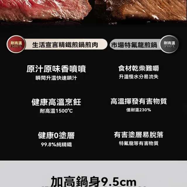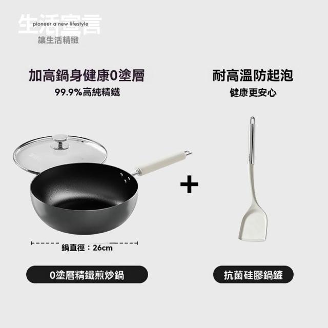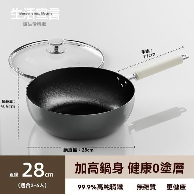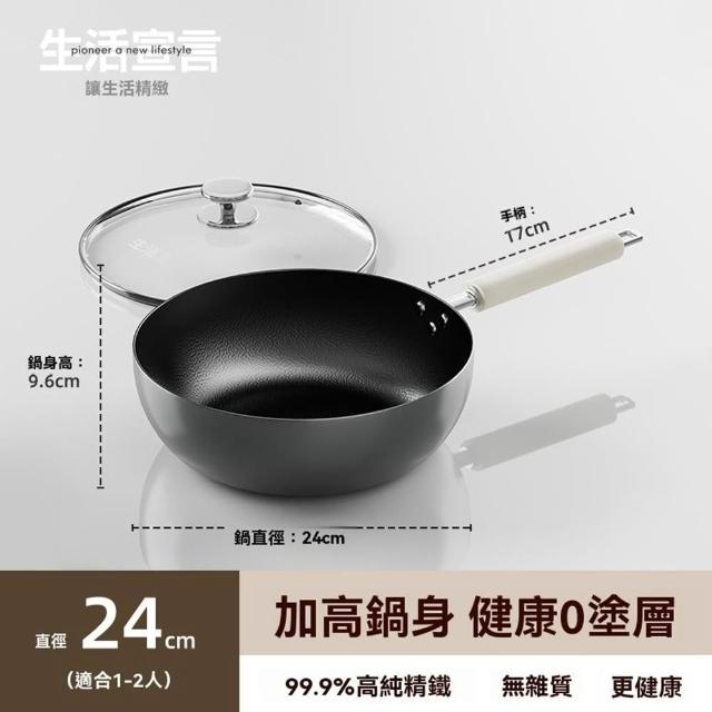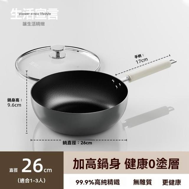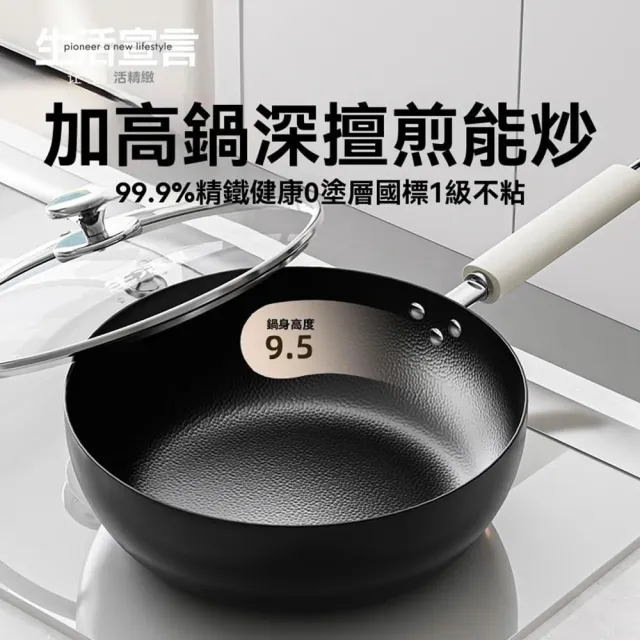 STAR·U星優品牌店 大肚鍋 加深精鐵平底鍋 不黏鍋 煎鍋 炒鍋 平底鍋(免開鍋/加高鍋身/99%高純精鐵無塗層)