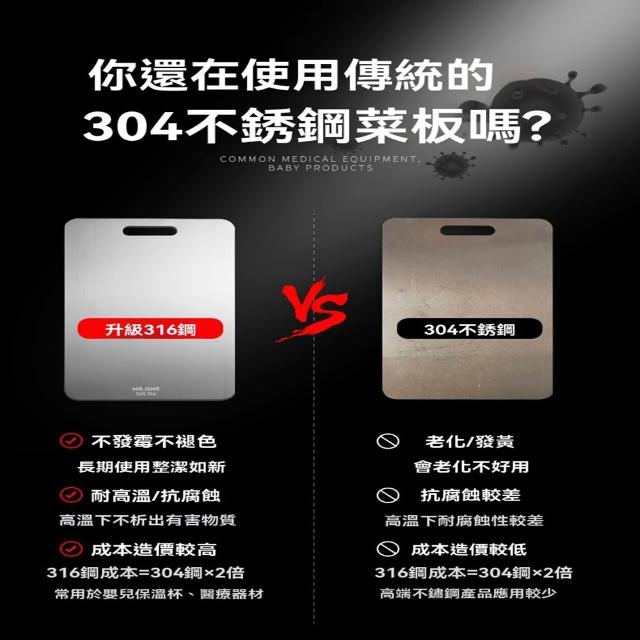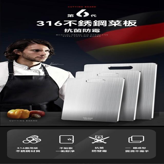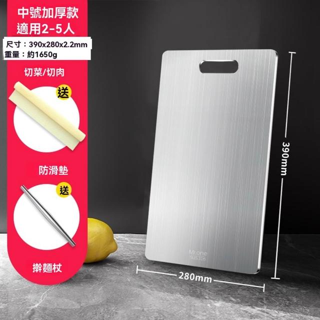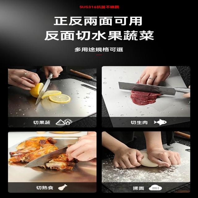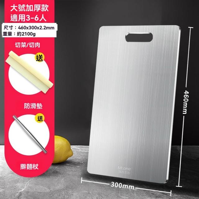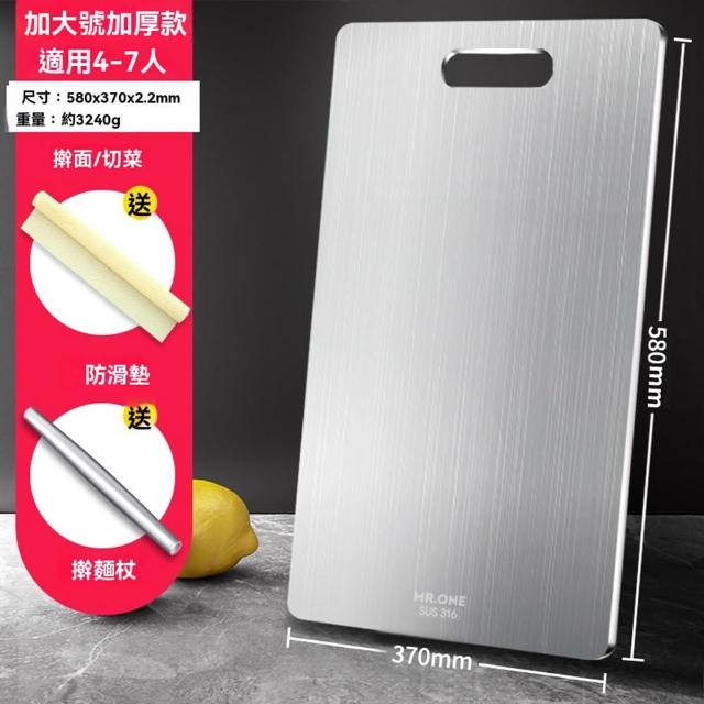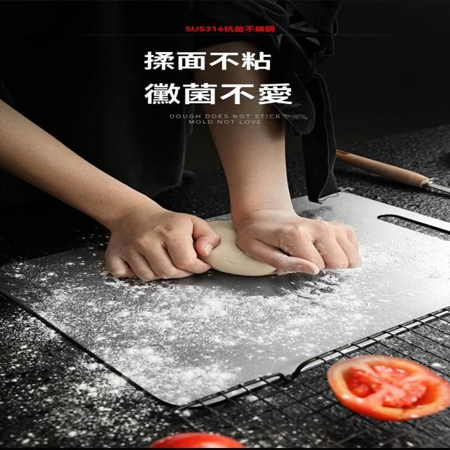 STAR·U星優品牌店 316不鏽鋼菜板 抗菌切菜板 砧板 擀面板 和麵板 不鏽鋼砧板 切菜板 厨房砧板(不傷刀声音小/送防滑垫擀麵杖)