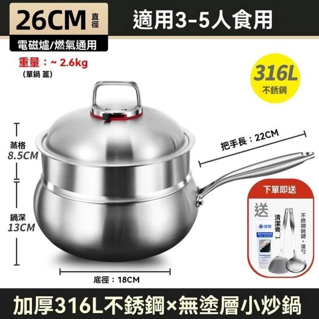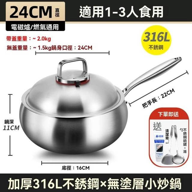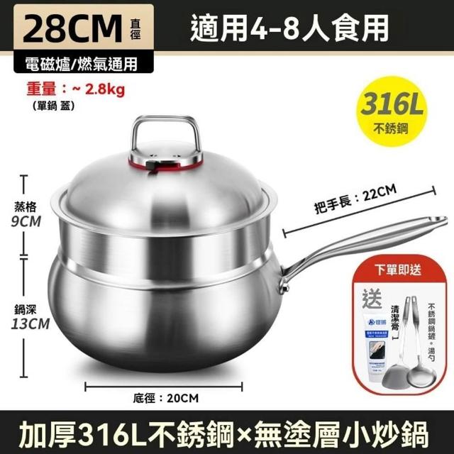 STAR·U星優品牌店 大肚鍋 炒菜鍋 無塗層不黏鍋 小炒鍋 微壓鍋 316食品級不鏽鋼 特厚七層鋼 24/2628cm
