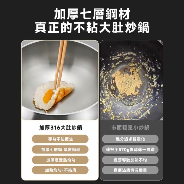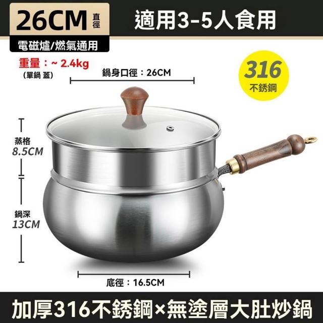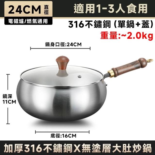 STAR·U星優品牌店 大肚鍋 炒鍋 平底鍋 316不鏽鋼平底炒鍋 食品級加厚(肚大鍋深/爆炒小鍋/剪炒不黏)
