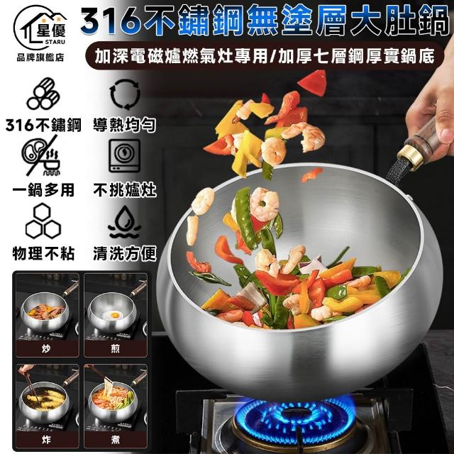 STAR·U星優品牌店 台灣現貨 大肚鍋 炒鍋 平底鍋 316不鏽鋼炒鍋 炒菜鍋 食品級加厚(肚大鍋深/煎炒不黏)