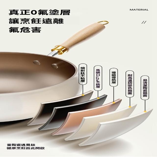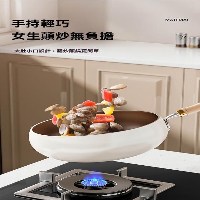 STAR·U星優品牌店 大肚鍋 鈦陶瓷大肚鍋 鐵鍋 無塗層炒鍋 不黏鍋 家用炒菜鍋 電磁爐燃氣通用(24cm/26cm 內外不黏不發黃不發黑)