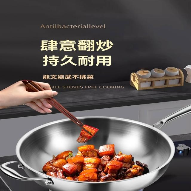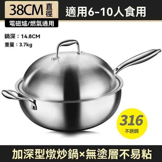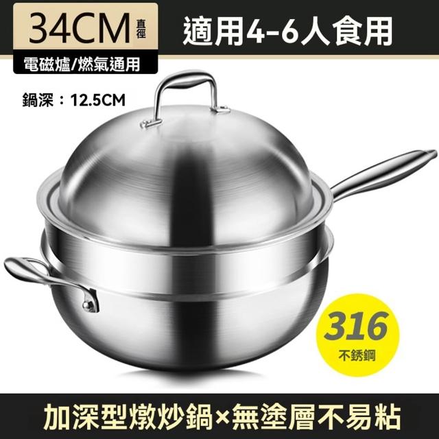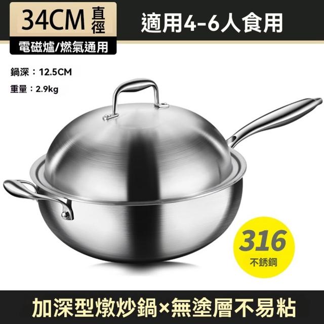 STAR·U星優品牌店 不鏽鋼炒鍋 加深316食品級炒菜鍋 無塗層不黏鍋 燉鍋 大肚鍋 炒鍋 蒸籠 燉炒鍋(鍋深14.8cm/肚大鍋深/整鍋拋光拉絲工藝)
