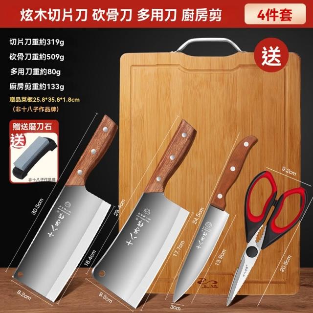 STAR·U星優品牌店 十八子作菜刀 刀具組 菜刀組 切片刀 切刀 砍骨刀 斬切刀 水果刀 切口平整 煉鋼風力耐磨(送磨刀石+廚房剪)