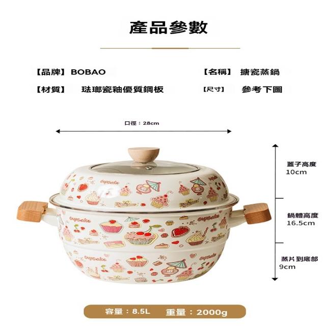 STAR·U星優品牌店 蒸鍋 搪瓷蒸鍋 琺瑯鍋 雙層蒸鍋 甜品蛋糕蒸鍋 蒸饅頭早餐 高蓋加深24cm 28cm厚(上蒸下煮/聚熱保溫/耐高溫)