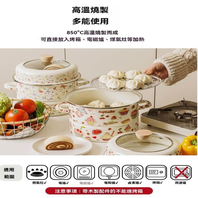 STAR·U星優品牌店 蒸鍋 搪瓷蒸鍋 琺瑯鍋 雙層蒸鍋 甜品蛋糕蒸鍋 蒸饅頭早餐 高蓋加深24cm 28cm厚(上蒸下煮/聚熱保溫/耐高溫)
