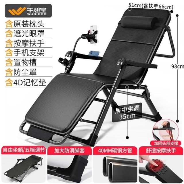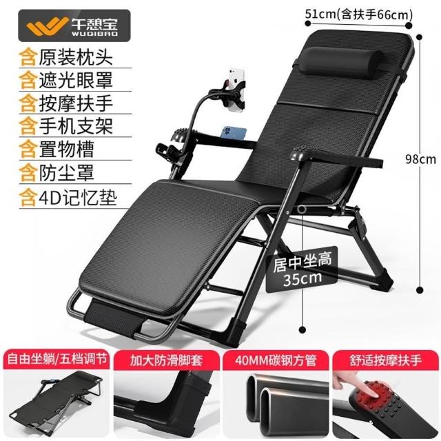 STAR·U星優品牌店 躺椅 折疊躺椅 午休躺椅 坐躺兩用靠背椅 全碳鋼架(床椅兩用/透氣特斯林椅面/帶手機支架)