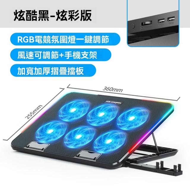 STAR·U星優品牌店 筆電散熱器 製冷降溫散熱器 筆電架 筆電支架 筆電散熱架(RGB燈/5檔高度/6核散熱)