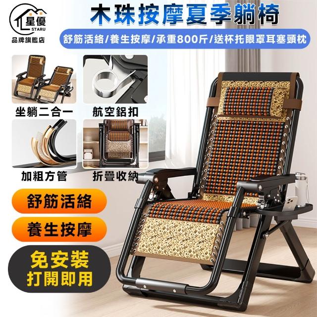STAR·U星優品牌店 躺椅 午休躺椅 折疊躺椅 木珠按摩顆粒🔥承重800斤 休閒躺椅 辦公室躺椅 午睡椅 靠背椅