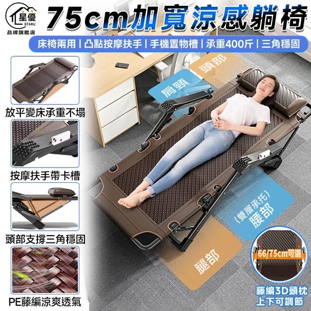 STAR·U星優品牌店 躺椅 折疊躺椅 升級特寬75cm🔥涼感PE藤編蓆 午休躺椅折疊梯 躺椅折疊椅 午睡床 可放平