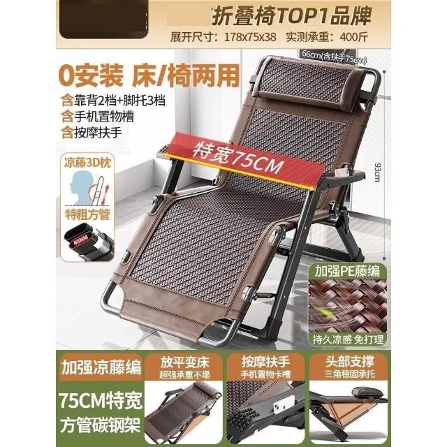STAR·U星優品牌店 躺椅 折疊躺椅 升級特寬75cm🔥涼感PE藤編蓆 午休躺椅折疊梯 躺椅折疊椅 午睡床 可放平