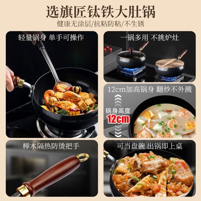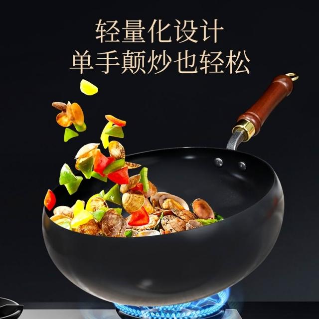 STAR·U星優品牌店 炒鍋 大肚鍋 平底鍋 不粘鍋 煎鍋 升級鈦鐵材質(實木手柄設計防燙/高密度無雜質真正不粘鍋)