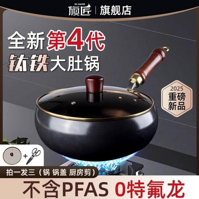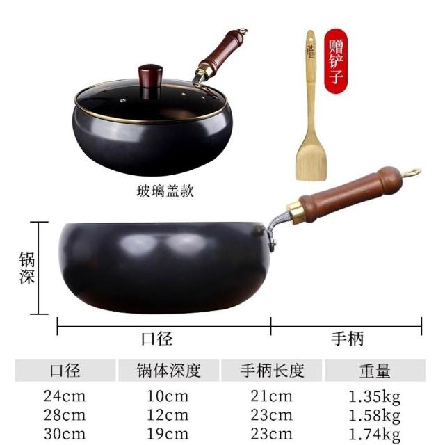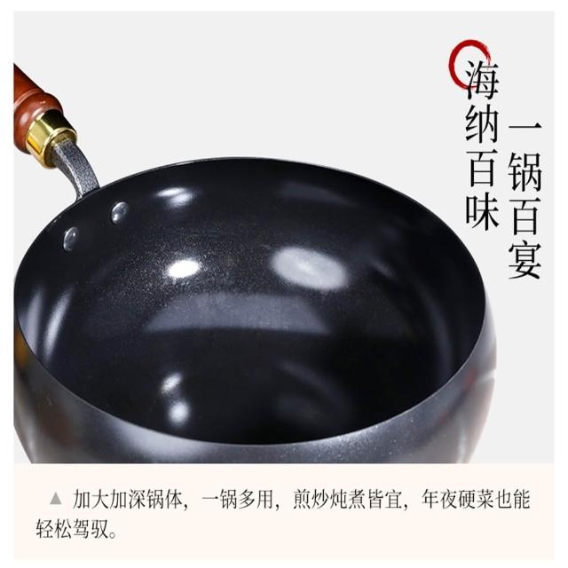STAR·U星優品牌店 炒鍋 大肚鍋 平底鍋 不粘鍋 煎鍋 升級鈦鐵材質(實木手柄設計防燙/高密度無雜質真正不粘鍋)
