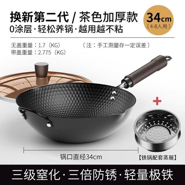 STAR·U星優品牌店 炒鍋 大肚鍋 平底鍋 不粘鍋 煎鍋 不鏽鋼鐵鍋(無需開鍋收到即可使用/0塗層導熱均勻)