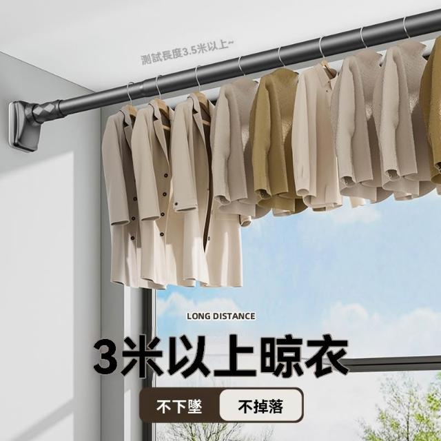 STAR·U星優品牌店 免打孔伸縮桿 晾衣桿 陽台窗簾桿 掛衣桿 撐衣桿 伸縮桿(防風凹槽卡扣/有間距幹得快)