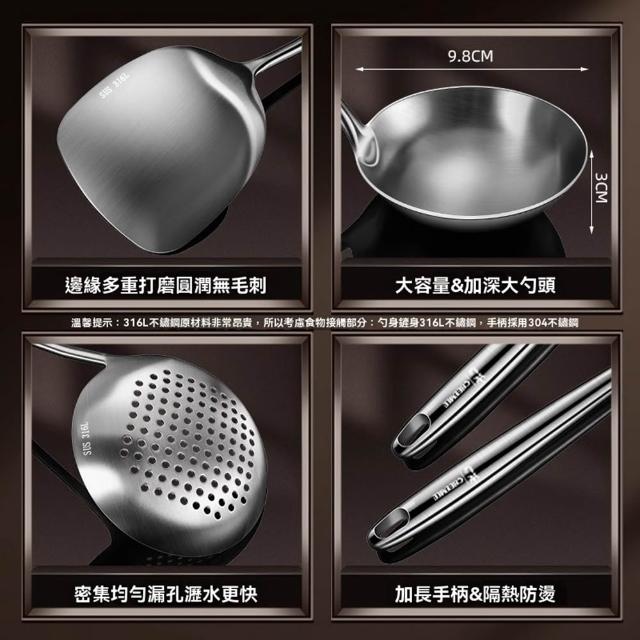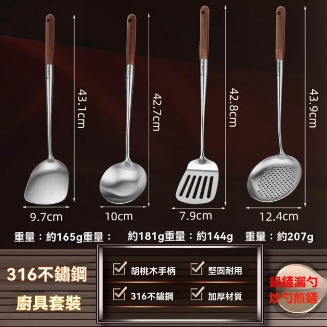 STAR·U星優品牌店 食品級316不鏽鋼炒菜勺 廚具套裝 炒菜勺 鏟子勺子 304湯勺 鍋鏟套裝(全鋼升級加長不生鏽)