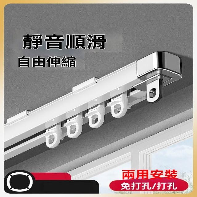 STAR·U星優品牌店 窗簾軌道 伸縮軌道 單軌 免打孔窗簾桿 靜音滑軌 承重100KG(頂裝/側裝可選 長度自由伸縮)
