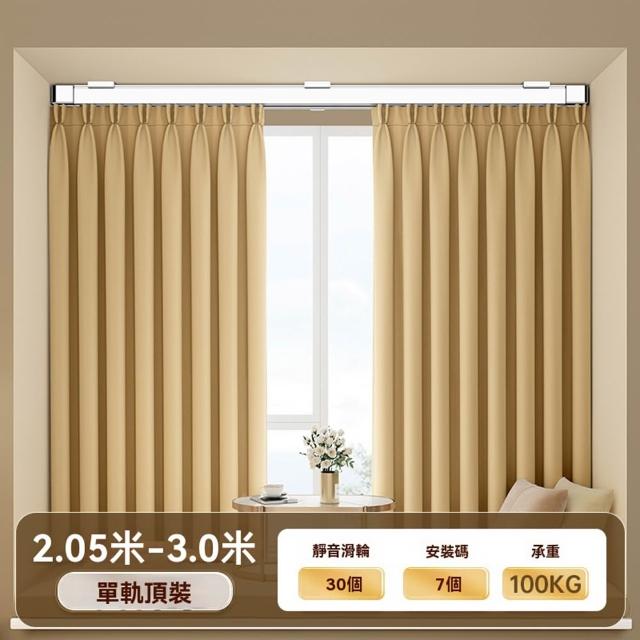 STAR·U星優品牌店 窗簾軌道 伸縮軌道 單軌 免打孔窗簾桿 靜音滑軌 承重100KG(頂裝/側裝可選 長度自由伸縮)