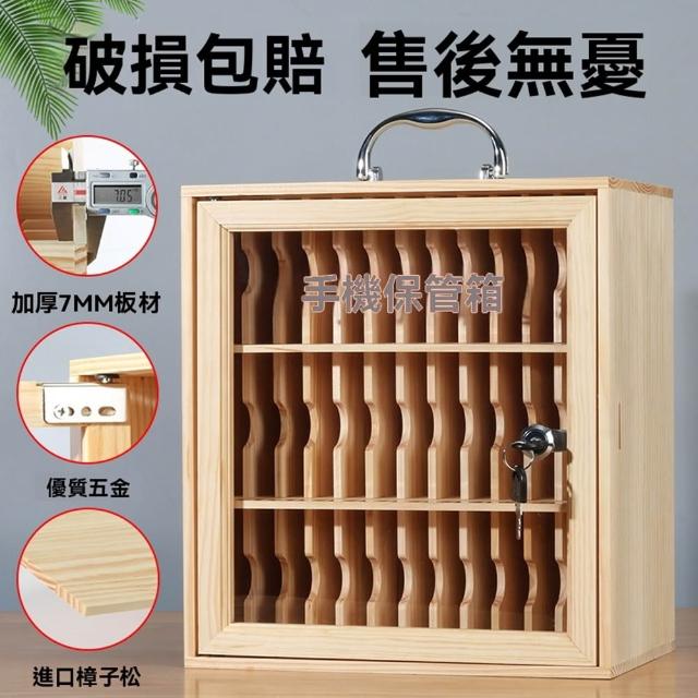 STAR·U星優品牌店 手機保管箱 實木保管箱 透明保管箱 手機箱 手機存放櫃 收納盒 儲存箱(實木帶鎖 可手提)