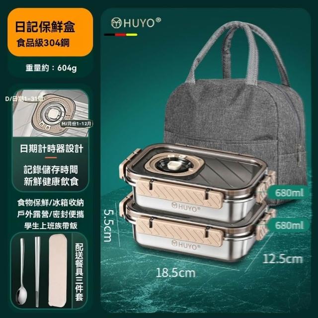 (星優品牌店)保鮮盒 304不銹鋼飯盒 食物收納盒 冰箱冷凍盒(密封防漏 帶日期計時器 耐腐蝕易清洗 送保溫袋)