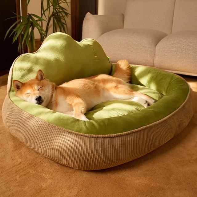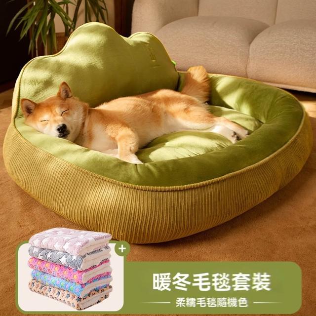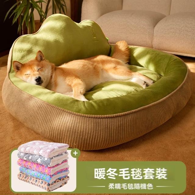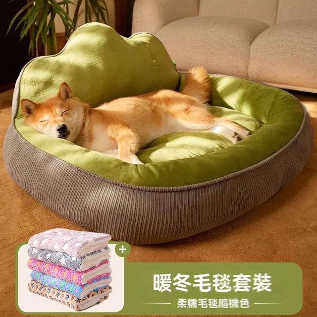 (星優品牌店)狗窩 貓窩 狗床 寵物保暖墊 寵物睡墊(中小型犬 加高加厚 燈芯絨 帶靠枕 送毛毯)