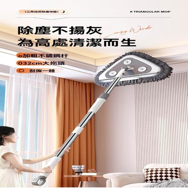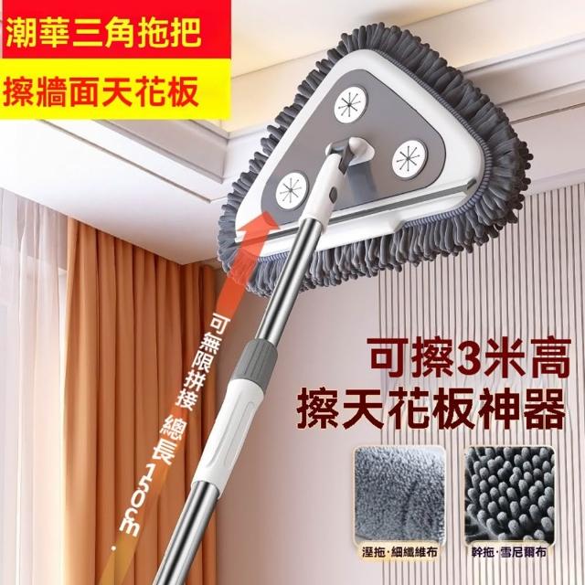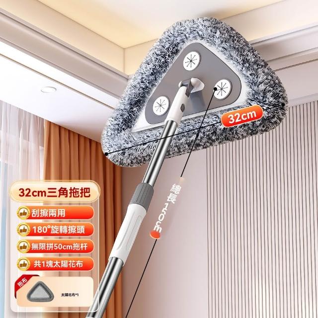 (星優品牌店)三角拖把 擦天花板神器 天花板清潔神器 擦牆面天花板 刮擦一體 伸縮拖把(32cm大拖頭 1.5米長)