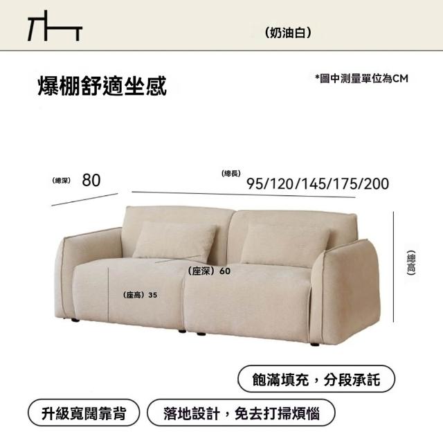 STAR·U星優品牌店 布藝沙發 直排大沙發 公寓復古沙發 多人沙發 奶油風沙發(飽滿海綿填充/落地設計/寬闊靠背)