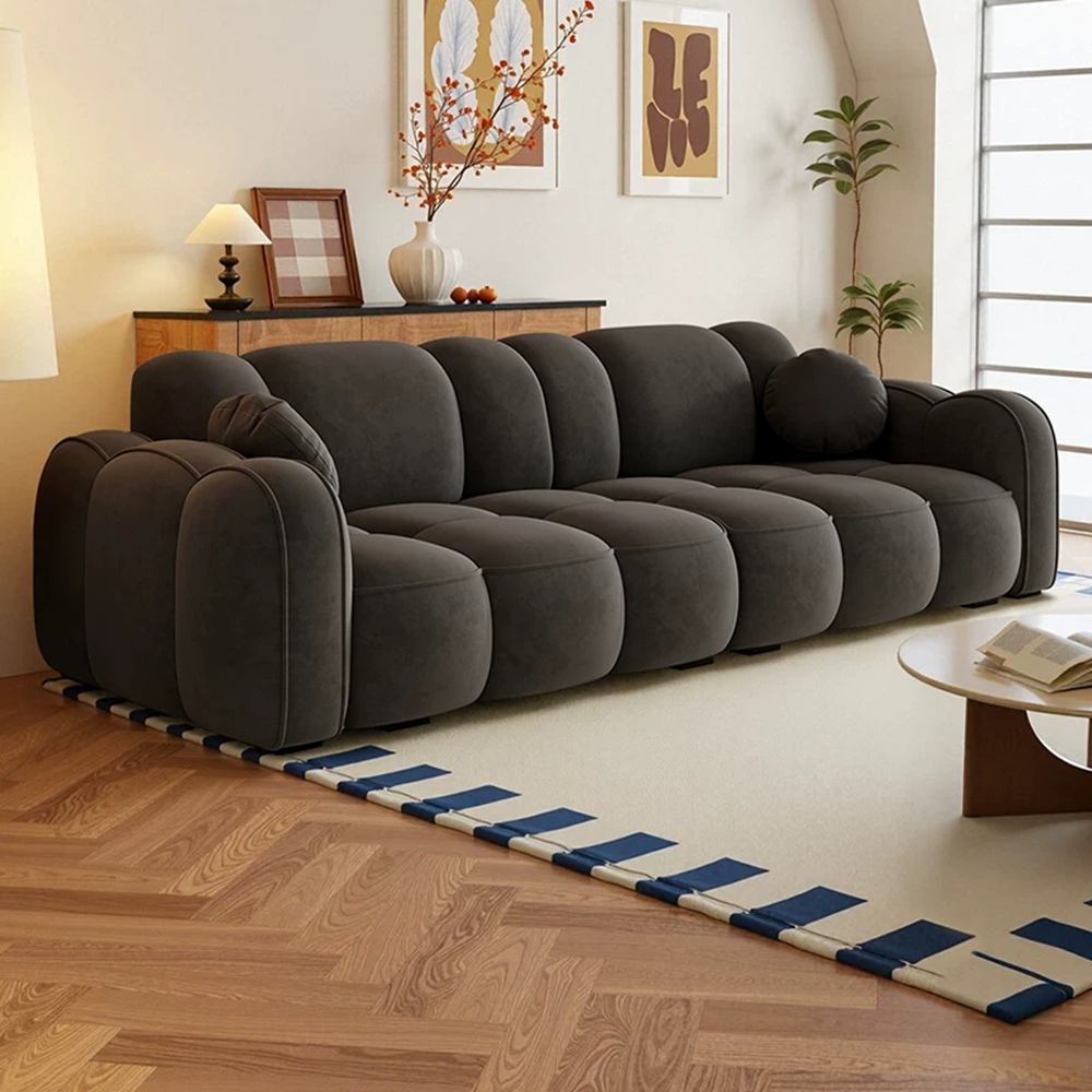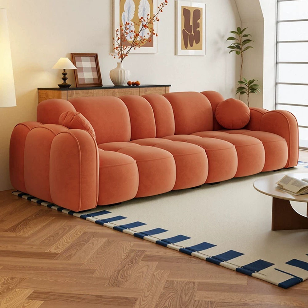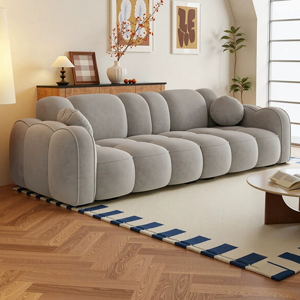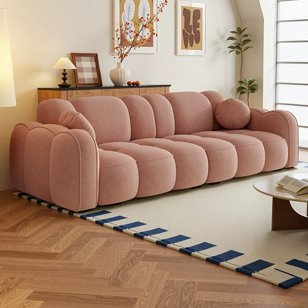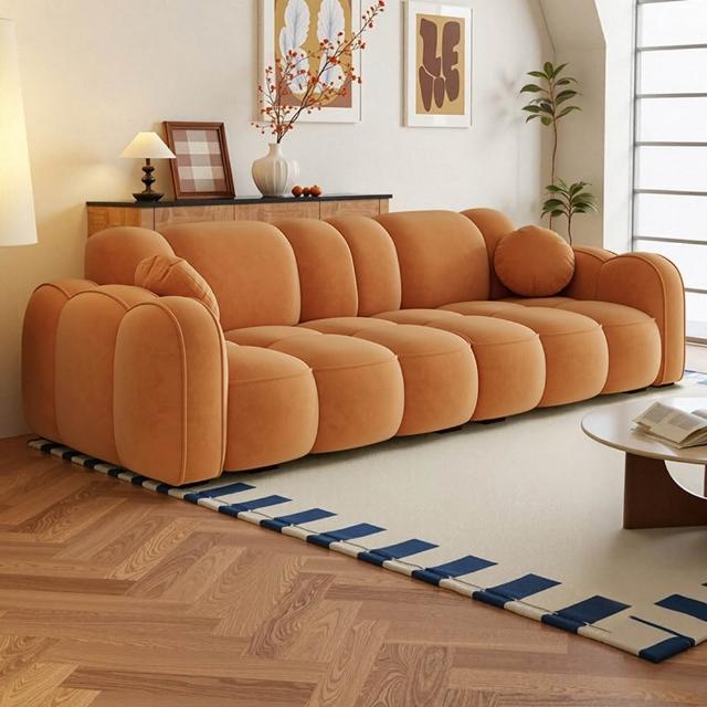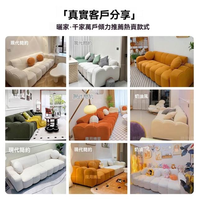 STAR·U星優品牌店 法式奶油風沙發 實木框架大沙發 餅乾布藝沙發 簡約泡芙沙發(實木框架/高回彈海綿/親膚高級絨)