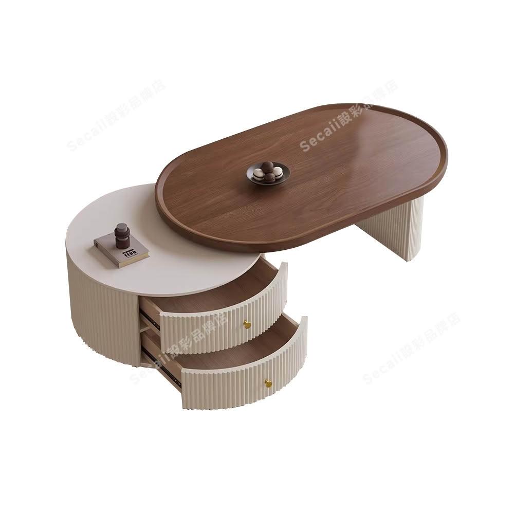 (星優品牌店)子母伸縮茶几 實木茶几桌(一體式免安裝⛅️雙層抽屜收納)伸縮茶几 客廳茶几桌 子母桌 實木茶几