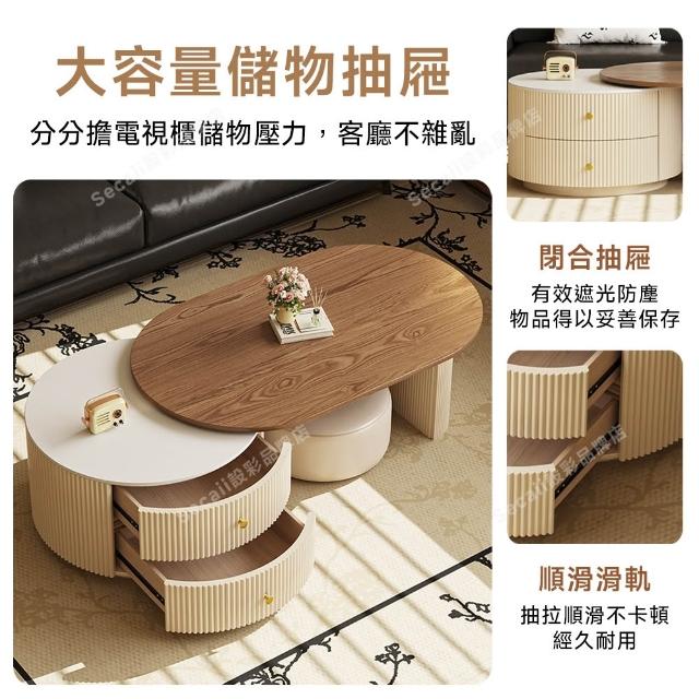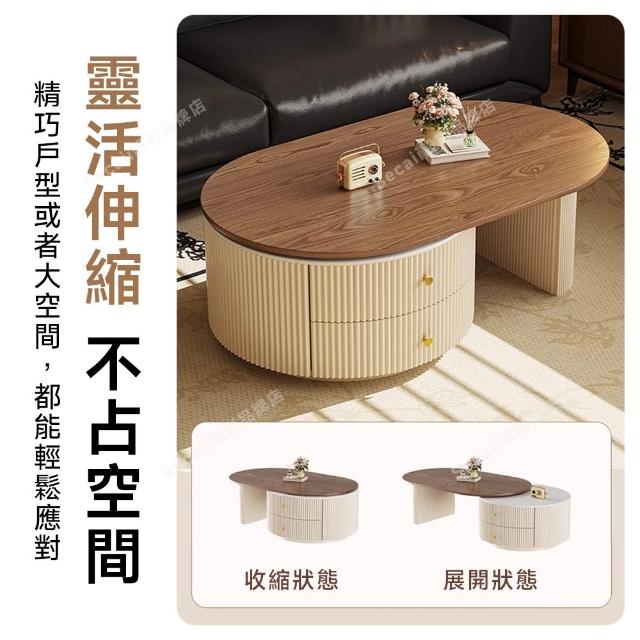 (星優品牌店)子母伸縮茶几 實木茶几桌(一體式免安裝⛅️雙層抽屜收納)伸縮茶几 客廳茶几桌 子母桌 實木茶几