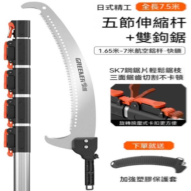 (星優品牌店)伸縮高枝鋸 修枝剪 高枝剪 高空鋸木頭 伐木鋸 鋸樹神器 雙鉤鋸(3-7.5米 粗/細枝通吃 高舉不累)