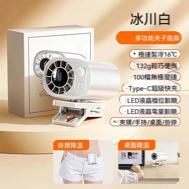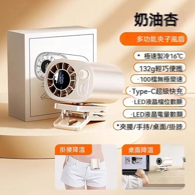 (星優品牌店)掛腰風扇 車載風扇 夾子風扇 手持風扇 桌面風扇 多功能小風扇(可夾傘柄 電量數顯 充插兩用)