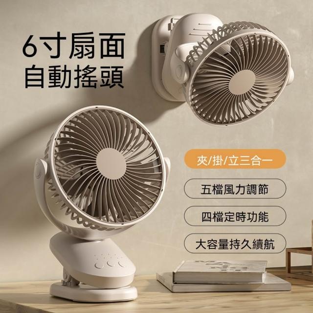 星優 小風扇 桌夾扇 6吋可定時 充插兩用 自動搖頭 USB風扇 家用風扇 學生風扇 可壁掛可夾桌