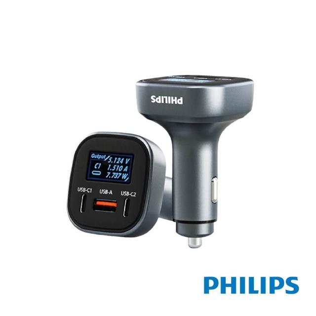 Philips 飛利浦100W 數位顯示車用充電器 LED智慧顯示(黑金剛 車用快充 快速車充 車充 DLP3540C)