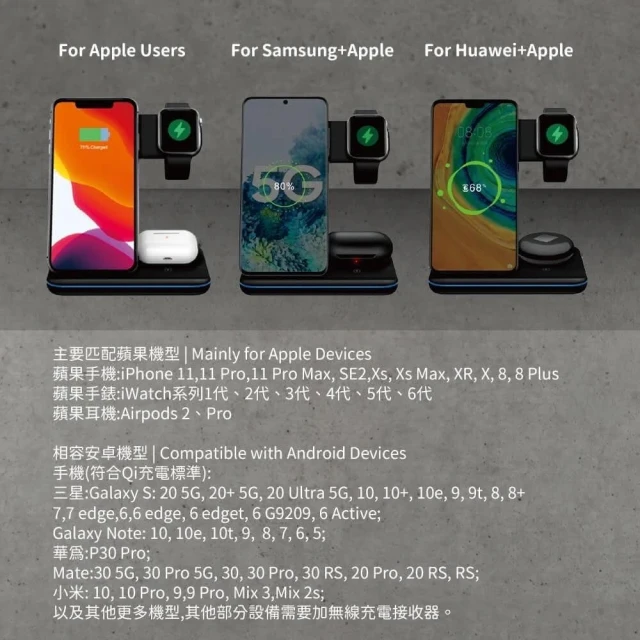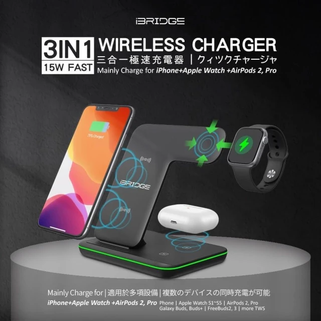 iBRIDGE三合一無線充電盤 iPhone AirPods Apple Watch 無線充電 快速充電