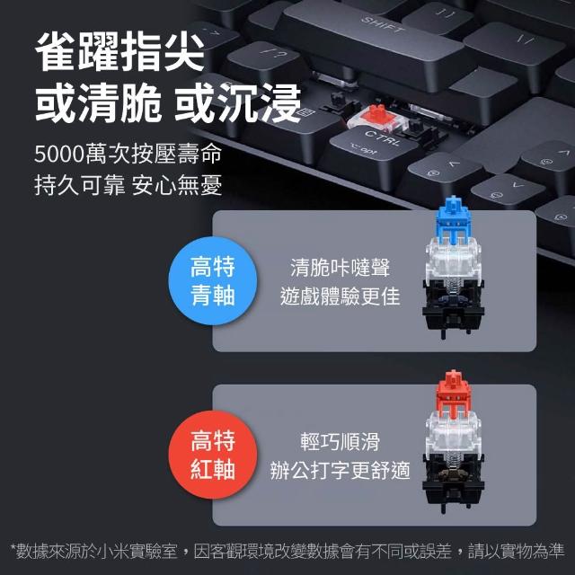 小米小米 有線機線鍵盤 有線鍵盤 機械鍵盤 青軸 紅軸 發光鍵盤 鍵線分離 104全鍵 辦公文書鍵盤
