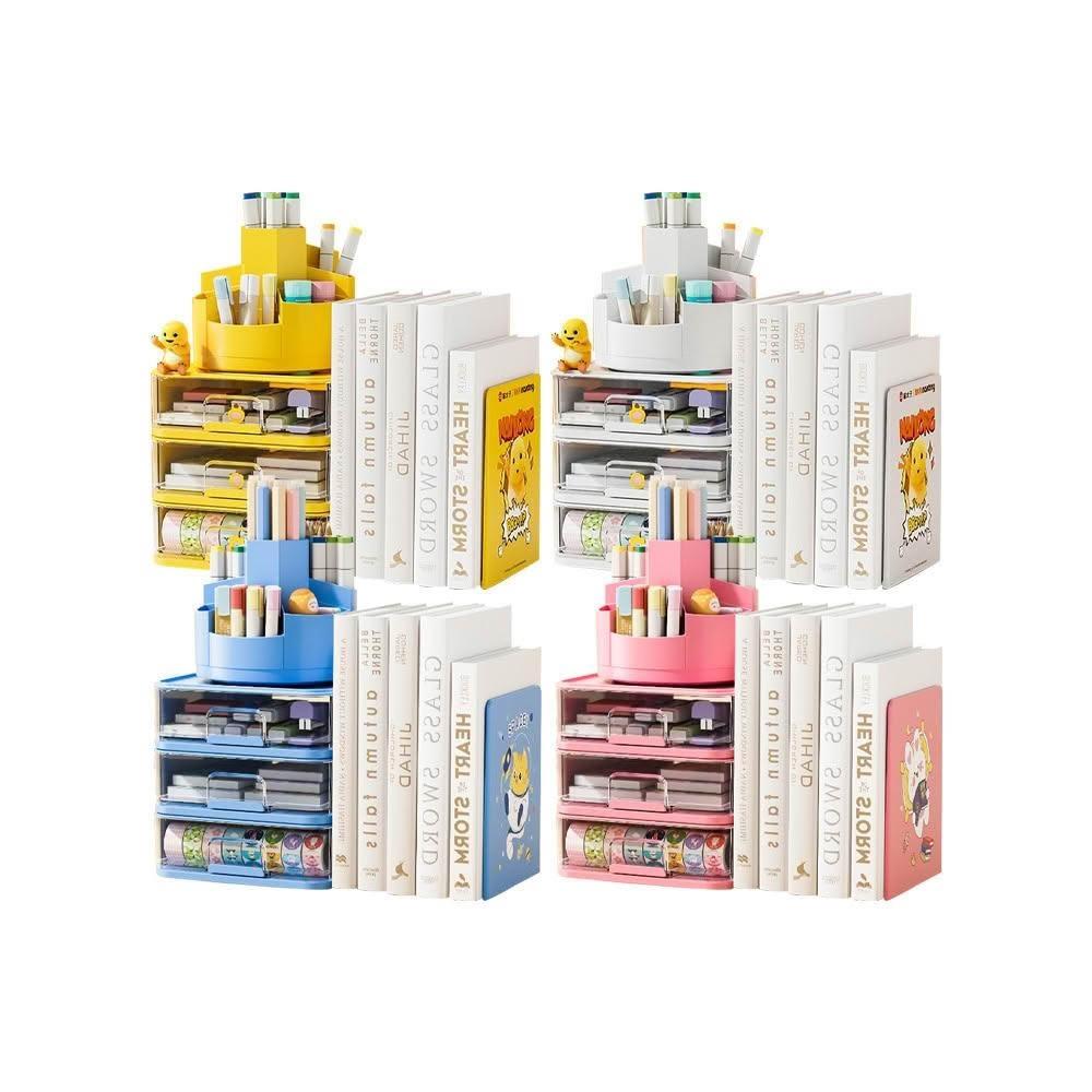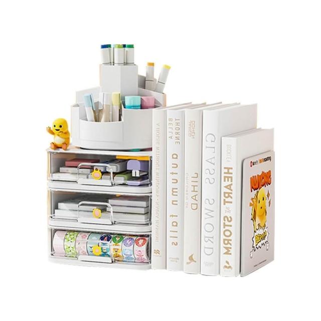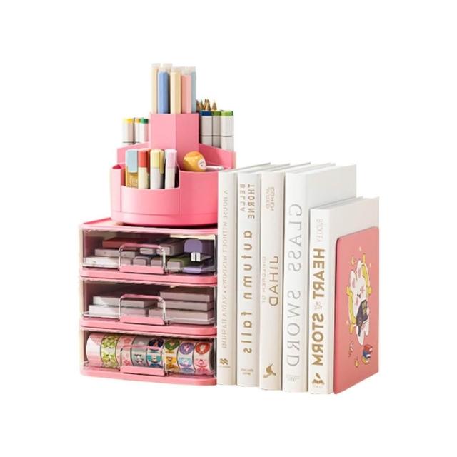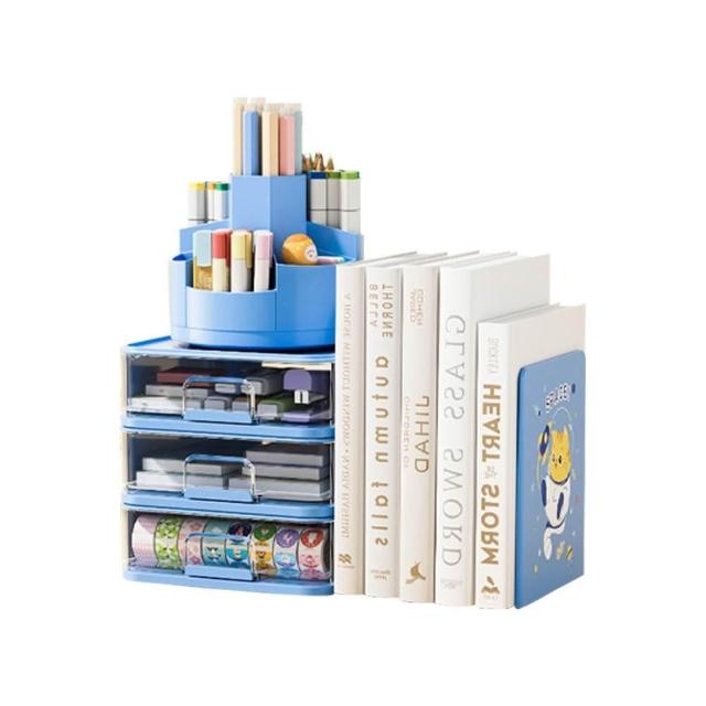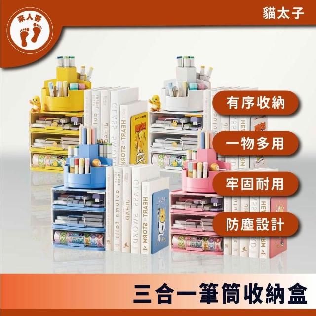 貓太子 三合一筆筒收納盒 旋轉筆筒 文具收納 桌面收納盒 收納盒 360度旋轉 書架 辦公收納