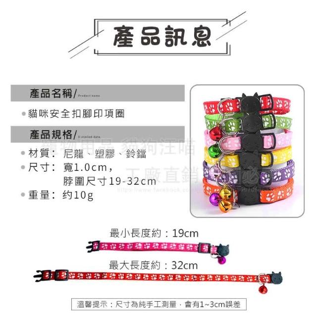 貓狗汪喵俏皮腳印貓咪安全扣鈴鐺項圈 項圈 狗項圈 貓項圈 寵物項圈(安全扣項圈 鈴鐺項圈 腳印項圈)