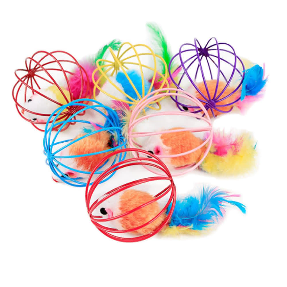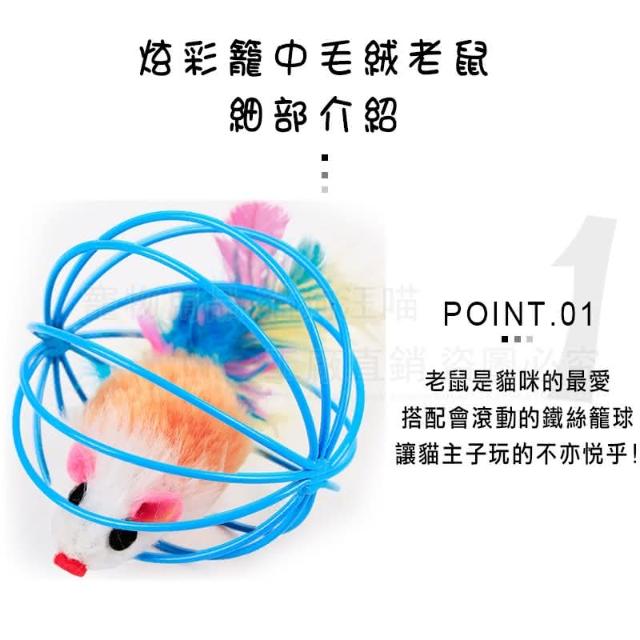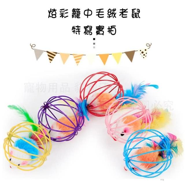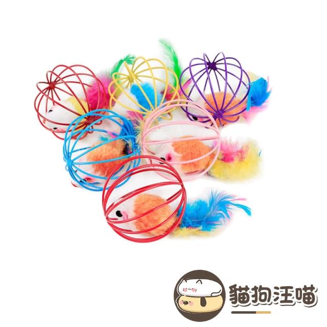 貓狗汪喵炫彩籠中毛絨老鼠 貓玩具 逗貓玩具 毛絨玩具 球籠逗貓玩具 球籠玩具 寵物玩具(貓抓球 籠中鼠玩具 滾球囚籠 貓老鼠玩具)